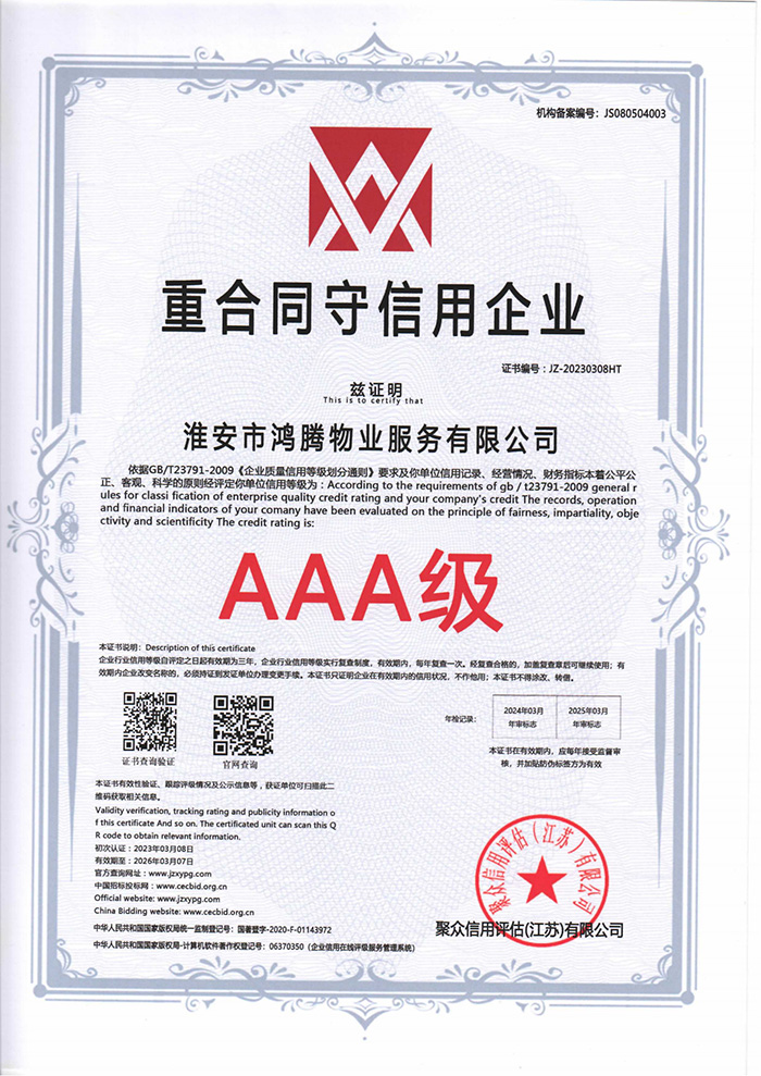 歡迎光臨淮安市鴻騰物業服務有限公司官方網站,我們將竭誠為您服務......